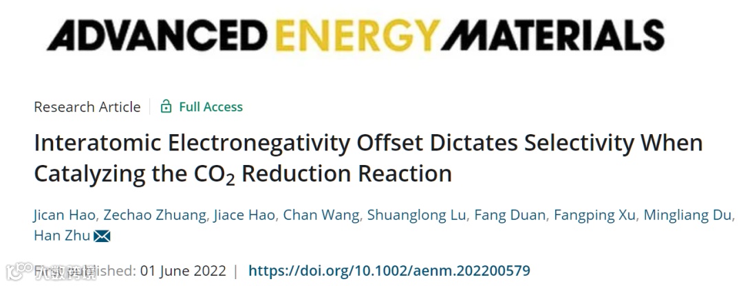 实验结果进一步证实CuNi-DSA间独特的电荷补偿效应能够显著提高CO2RR催化活性。该研究“Interatomic Electronegativity Offset Dictates Selectivity When Catalyzing the CO2 Reduction Reaction”发表在Advanced Energy Materials.