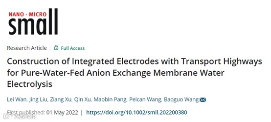 基于此,清华大学王保国教授课题组,在国际知名期刊Small上发表题为“Construction of Integrated Electrodes with Transport Highways for Pure-Water-Fed Anion Exchange Membrane Water Electrolysis”的研究论文,博士生万磊是第一作者,王保国为通讯作者。该工作得到了国家重点研发计划(2020YFB1505602,2018YFE0202001)支持。