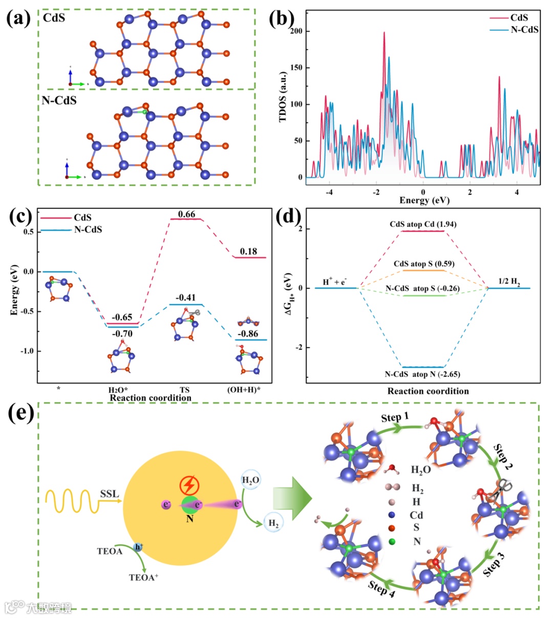 图5. DFT计算及杂原子-半导体协同机制