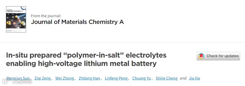 本文中,来自华中科技大学的曾子琪博士和谢佳教授,在国际知名期刊Journal of Materials Chemistry A上发表题为“In-situ prepared “polymer-in-salt” electrolytes enabling high-voltage lithium metal battery”的文章。在该工作中,作者结合原位聚合技术和“盐包聚合物”型聚合物电解质的优点,采用共聚的方法原位制备了聚(己内酯−丙交酯)基(PCA)“盐包聚合物”型电解质(PISE)。PISE与高电压正极和锂金属电池负极均具有良好的兼容性。