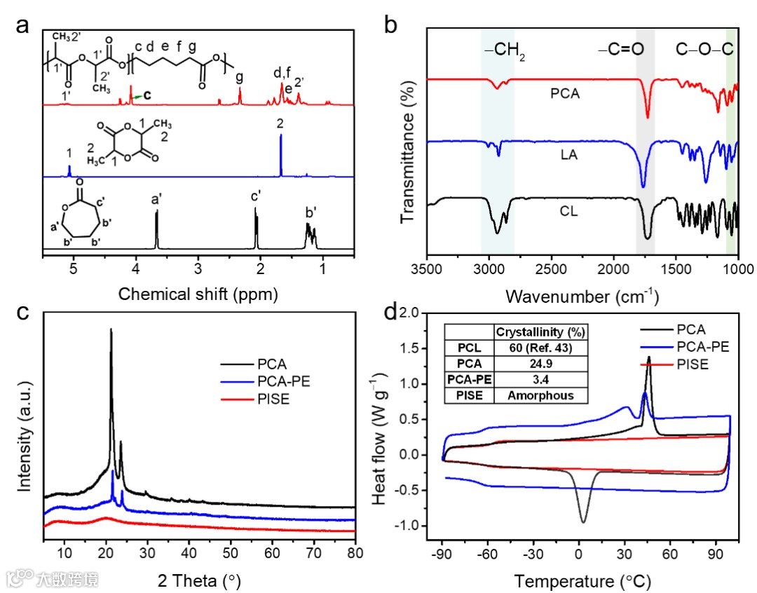 1H NMR和FTIR结果表明,聚(己内酯-丙交酯)成功制备。XRD与DSC结果表明,PISE结果具有完全无定形的结构。