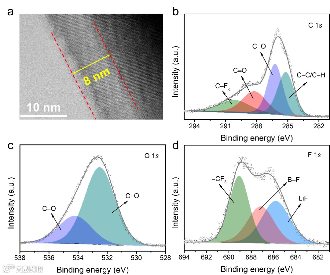 图5. 循环后正极电解质界面表征