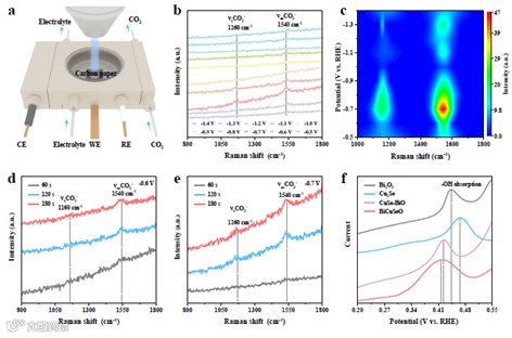 作者通过原位拉曼光谱检测到了甲酸的关键中间体OCHO*,证实了二氧化碳电还原反应的过程。