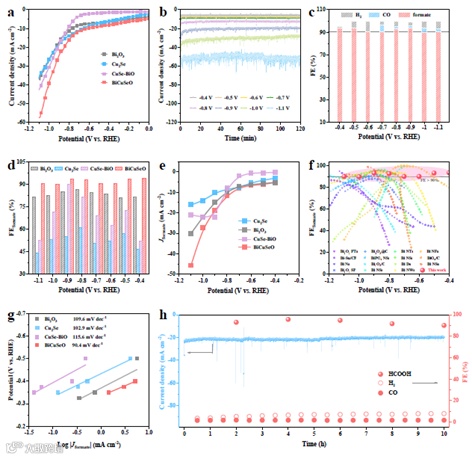 图2. BiCuSeO电催化CO2还原的反应活性