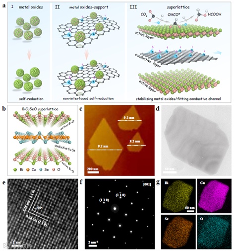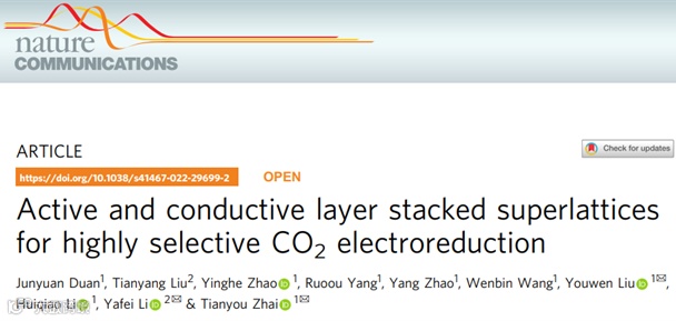 鉴于此,华中科技大学的刘友文副教授、翟天佑教授团队和和南京师范大学李亚飞教授合作在Nature Communications上发表题为“Active and conductive layer stacked superlattices for highly selective CO2 electroreduction”重要研究成果,报道了一种金属氧化物和硒化层交替堆垛的超晶格结构用于CO2高效电还原的研究。
