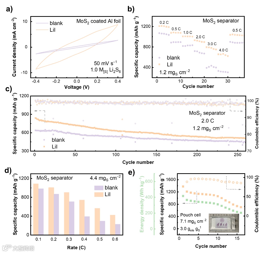图5. 调控锂盐策略应用于实际锂硫器件。