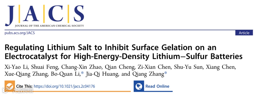 基于此,清华大学张强课题组联合北京理工大学李博权团队,在化学领域顶级期刊Journal of the American Chemical Society上发表题为“Regulating Lithium Salt to Inhibit Surface Gelation on an Electrocatalyst for High-Energy-Density Lithium−Sulfur Batteries”的研究论文。