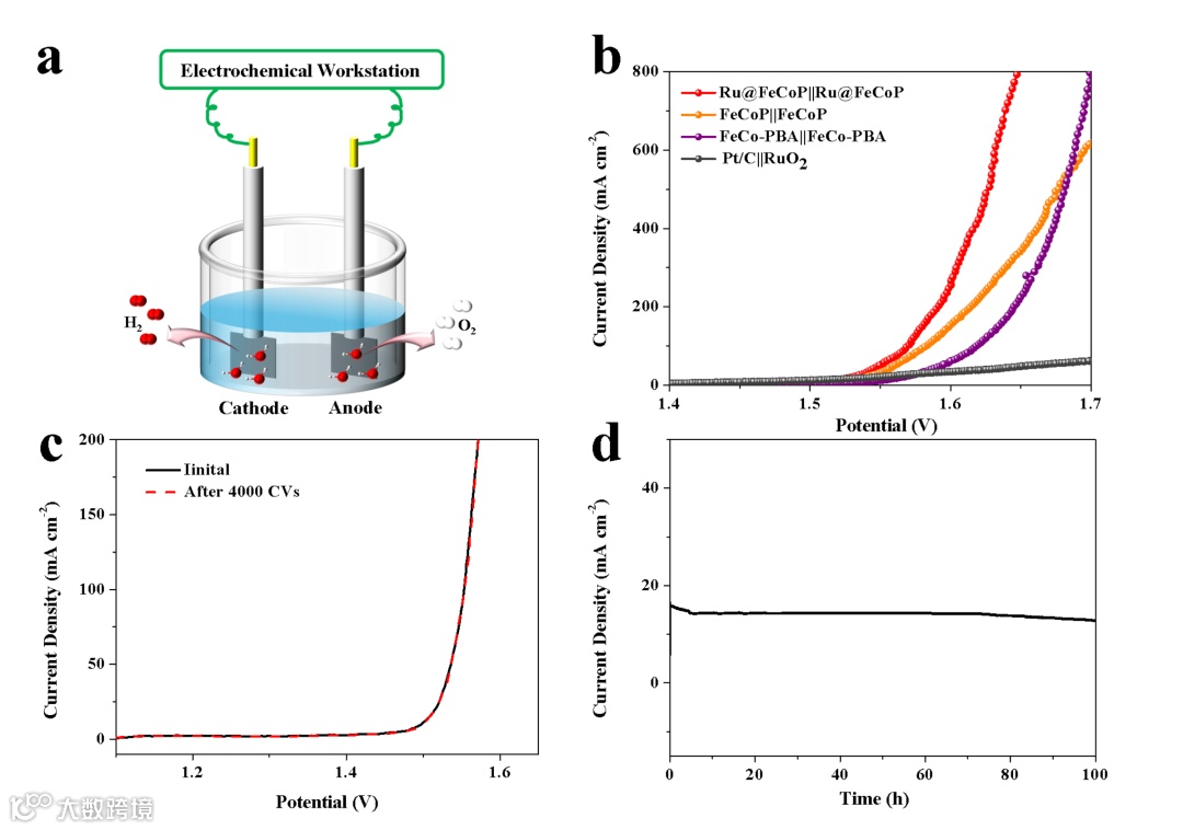 图6. Ru@FeCoP催化剂的全水分解测试。