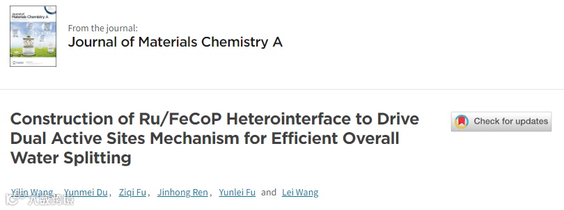 基于此,青岛科技大学的王磊教授团队,在国际知名期刊J. Mater. Chem. A. 上发表题为“Construction of Ru/FeCoP Heterointerface to Drive Dual Active Sites Mechanism for Efficient Overall Water Splitting”的文章。