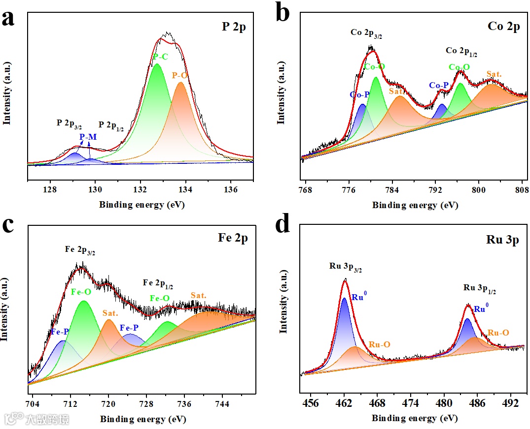 图5. OER反应后Ru@FeCoP催化剂的XPS图。