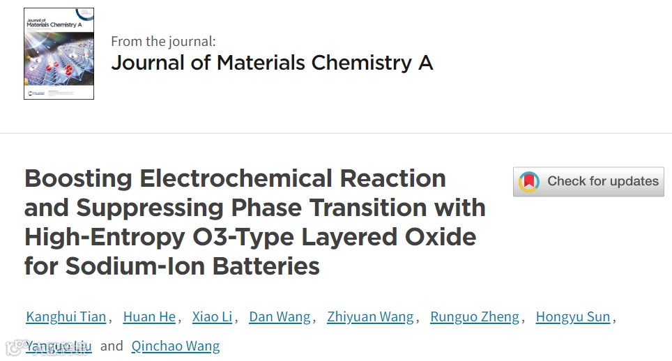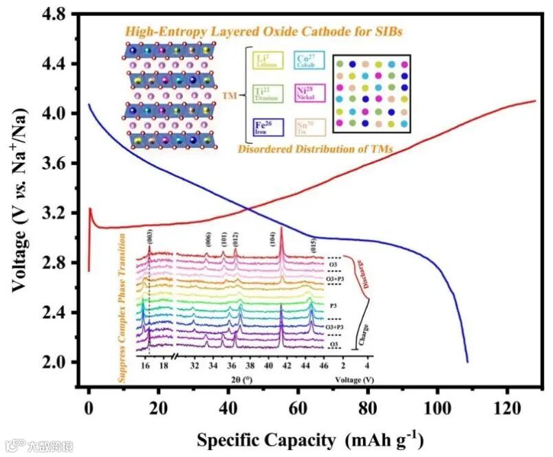 新型高熵O3型Na(Fe0.2Co0.2Ni0.2Ti0.2Sn0.1Li0.1)O2正极材料抑制相变提升钠离子电池性能。