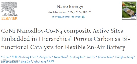 Yisi Liu, Zhicheng Chen, Zongxu Li, Nian Zhao, Yunlong Xie, Yue Du, Jinnan Xuan, Dongbin Xiong, Jianqing Zhou, Ling Cai and Yahui Yang,Nano Energy, (2022)