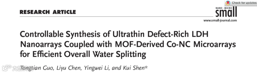 MOFs 衍生的 Co-NC微阵列耦合超薄LDHs纳米阵列用于高效全解水制氢