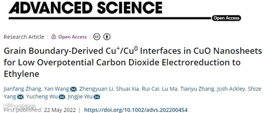 Advanced Science论文:晶界衍生的Cu+/Cu0界面促进低电位还原CO2生成乙烯