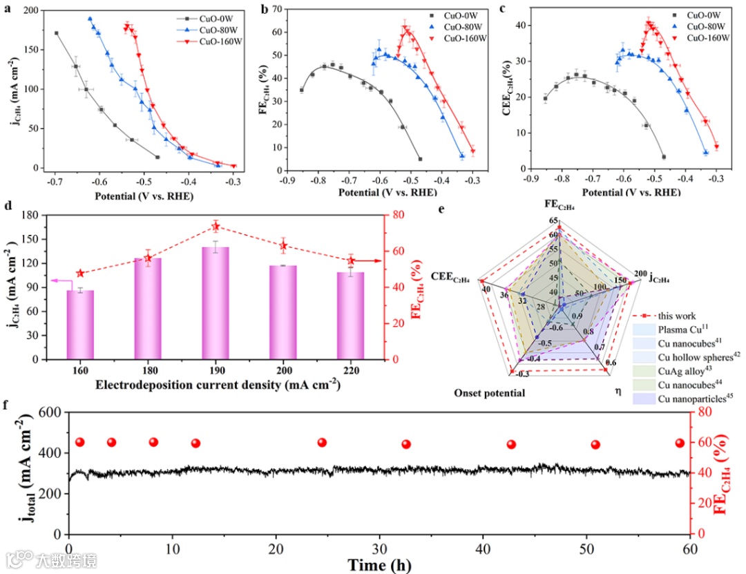 图2. 所制备的CuO纳米片的电催化CO2还原性能