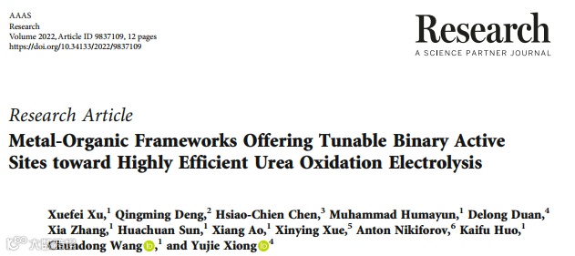 金属有机框架为高效尿素氧化电解提供可调节的二元活性位点