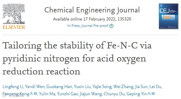 哈工大尹鸽平、孔凡鹏CEJ:基于氮原子精细结构调控提升Fe-N-C氧还原催化稳定性