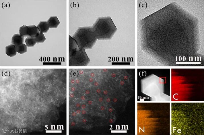 本文利用一步法合成了ZIF封装的二茂铁前驱体,通过调控不同的热解气氛(氩气和10%氢氩)制备了Fe-pyridinic N-C催化剂,AC HAADF-STEM证实了单原子Fe的分布。