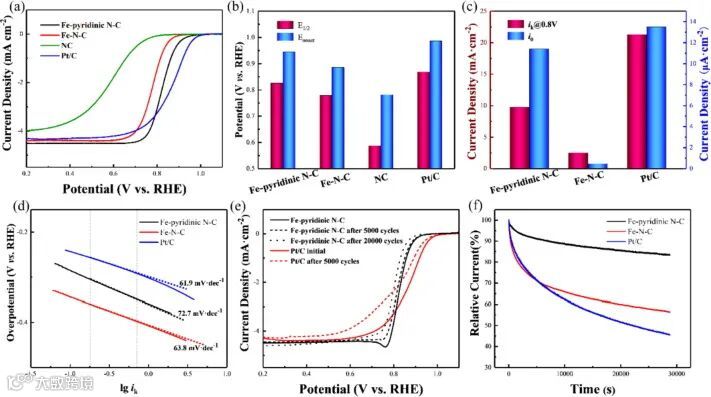 要点二:单原子Fe和吡啶N的协同,优异的ORR活性和稳定性