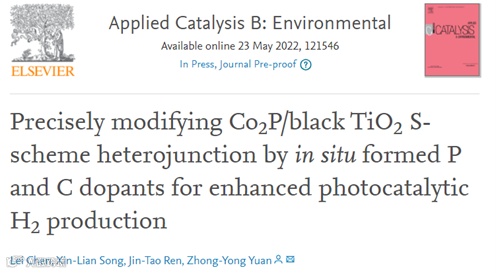 本文中,南开大学袁忠勇教授课题组在Applied Catalysis B: Environmental上发表了题为“Precisely modifying Co2P/black TiO2 S-scheme heterojunction by in situ formed P and C dopants for enhanced photocatalytic H2 production”的研究论文(DOI: 10.1016/j.apcatb.2022.121546)。