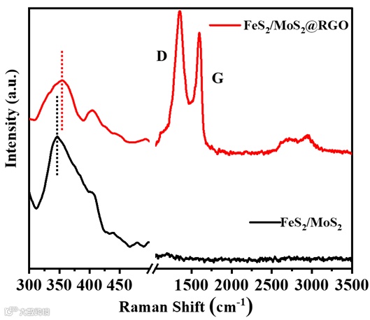 图4. FeS2/MoS2@RGO的拉曼光谱图