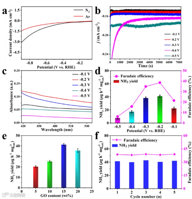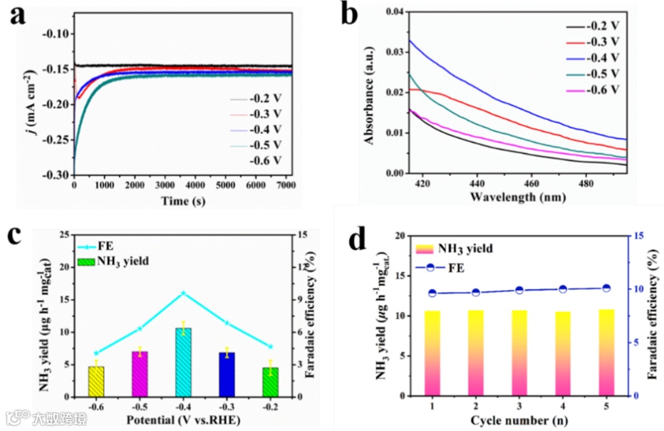 图6. FeS2/MoS2@RGO在碱性条件下的NRR性能图