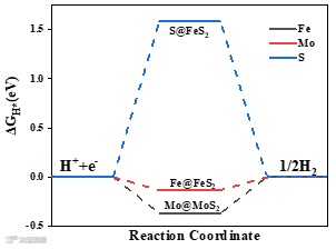 图9. FeS2(111)和MoS2(002)上的析氢 ΔG图