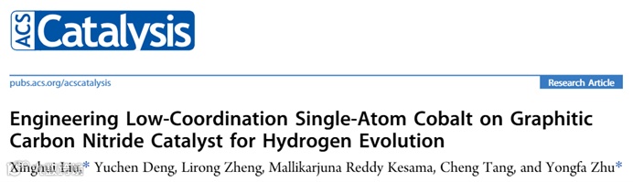 基于此,来自清华大学的朱永法教授在国际知名期刊ACS Catalysis上发表题为“Engineering Low-Coordination Single-Atom Cobalt on Graphitic Carbon Nitride Catalyst for Hydrogen Evolution”的研究性论文。