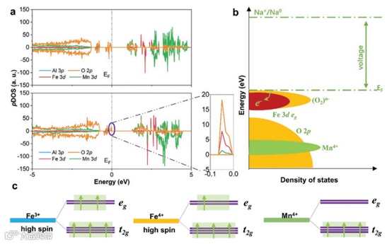 相较于Na2/3MnO2存在Jahn-Teller的P2’相,Na2/3Mn2/3Fe1/6Al1/6中Mn3+的Jahn-Teller作用明显被抑制(XRD,XPS)。