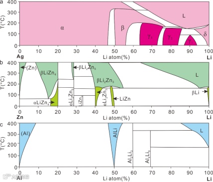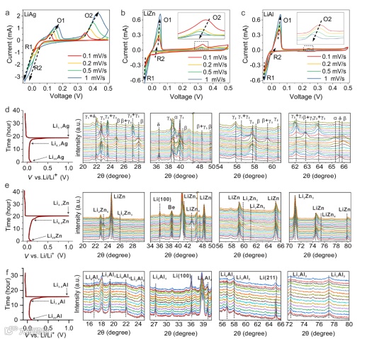 研究发现,Li-Al和Li-Zn在合金化/去合金化反应中的有限可逆性主要是由于金属间化合物的晶体结构变化所关联的相变能垒较高。相比之下,Li-Ag合金由于在锂合金化/去合金化过程中具有微妙的结构变化的宽固溶相区域,具有出色的合金化反应可逆性。