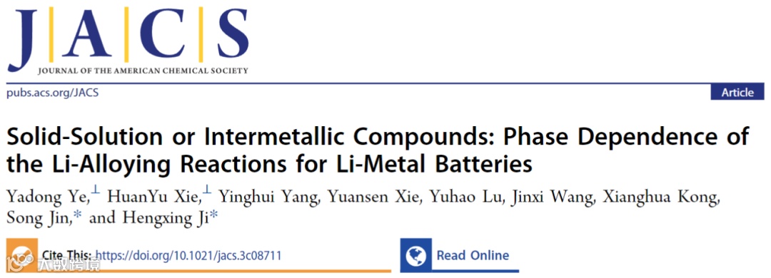 近日,来自中国科学技术大学的季恒星教授和金松特任副研究员,在国际知名期刊Journal of the American Chemical Society上发表题为“Solid-Solution or Intermetallic Compounds: Phase Dependence of the Li-Alloying Reactions for Li-Metal Batteries”的文章。该文章研究了三种代表性的锂合金,讨论了不同锂合金化反应机制对于不同合金相类型的依赖性,以及对应热力学性质和扩散动力学机制的影响。
