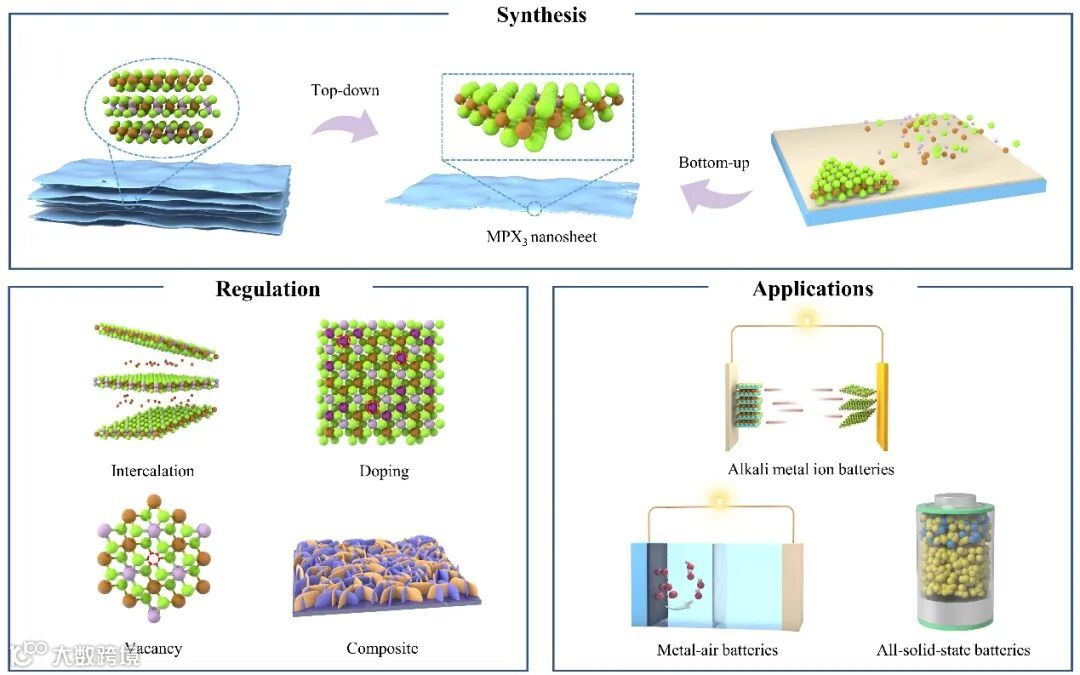 能源储存系统的发展在实现能源可持续性和稳定供应方面具有关键意义。作为解决能源挑战和环境难题的前瞻性策略之一,其中不可或缺的是电极材料的高效经济开发。二维材料以其独特的原子薄层结构,在能量储存和催化应用领域呈现出极具吸引力的潜力。这源于其卓越的离子嵌入和电解质扩散促进作用,以及优异的电导率、较大的比表面积和丰富的活性反应位点。其中一些材料还具备足够的力学强度,为可穿戴柔性设备的开发提供可能。近年来,对各类二维材料的广泛研究取得了蓬勃进展,其中值得关注的是金属硫磷化合物(MPX3),被认为是具有前景的下一代储能材料。其出色的离子迁移率、可调谐的能隙、灵活的元素组合以及较大的层间距,有望满足日益增长的可持续能源需求。