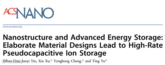 基于此,西安交通大学许鑫研究员、成永红教授与武汉大学于霆教授合作,在国际知名期刊ACS Nano上发表题为“Nanostructure and Advanced Energy Storage: Elaborate Material Designs Lead to High-Rate Pseudocapacitive Ion Storage”的综述文章。