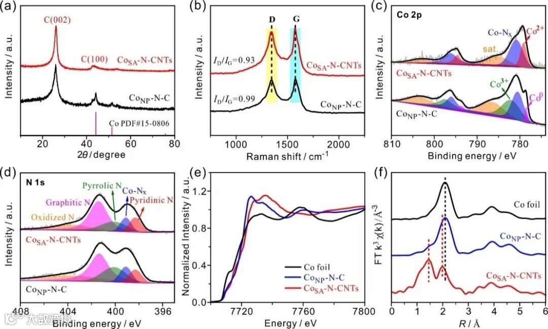 图3. CoSA-N-CNTs和CoNP-N-C催化剂的结构表征。