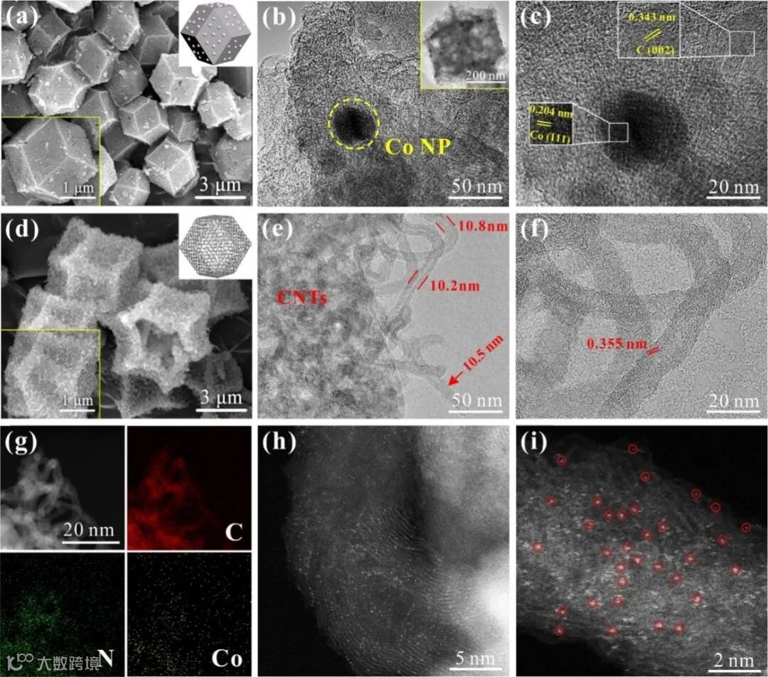 图2. CoSA-N-CNTs和CoNP-N-C催化剂的形貌表征。