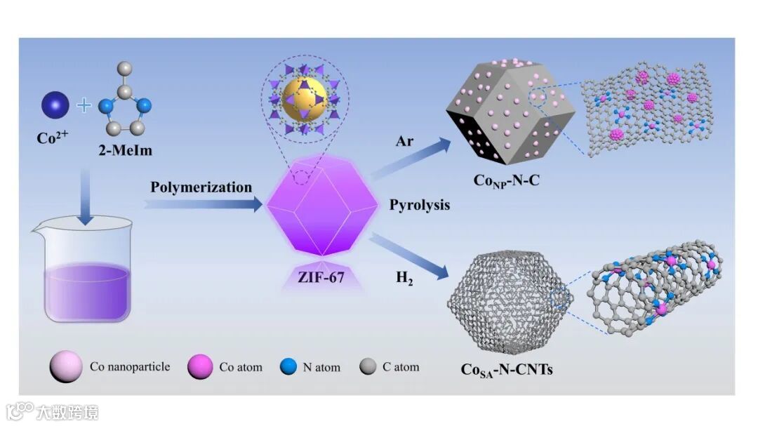 图1. CoSA-N-CNTs和CoNP-N-C两种不同结构催化剂的制备过程示意图。