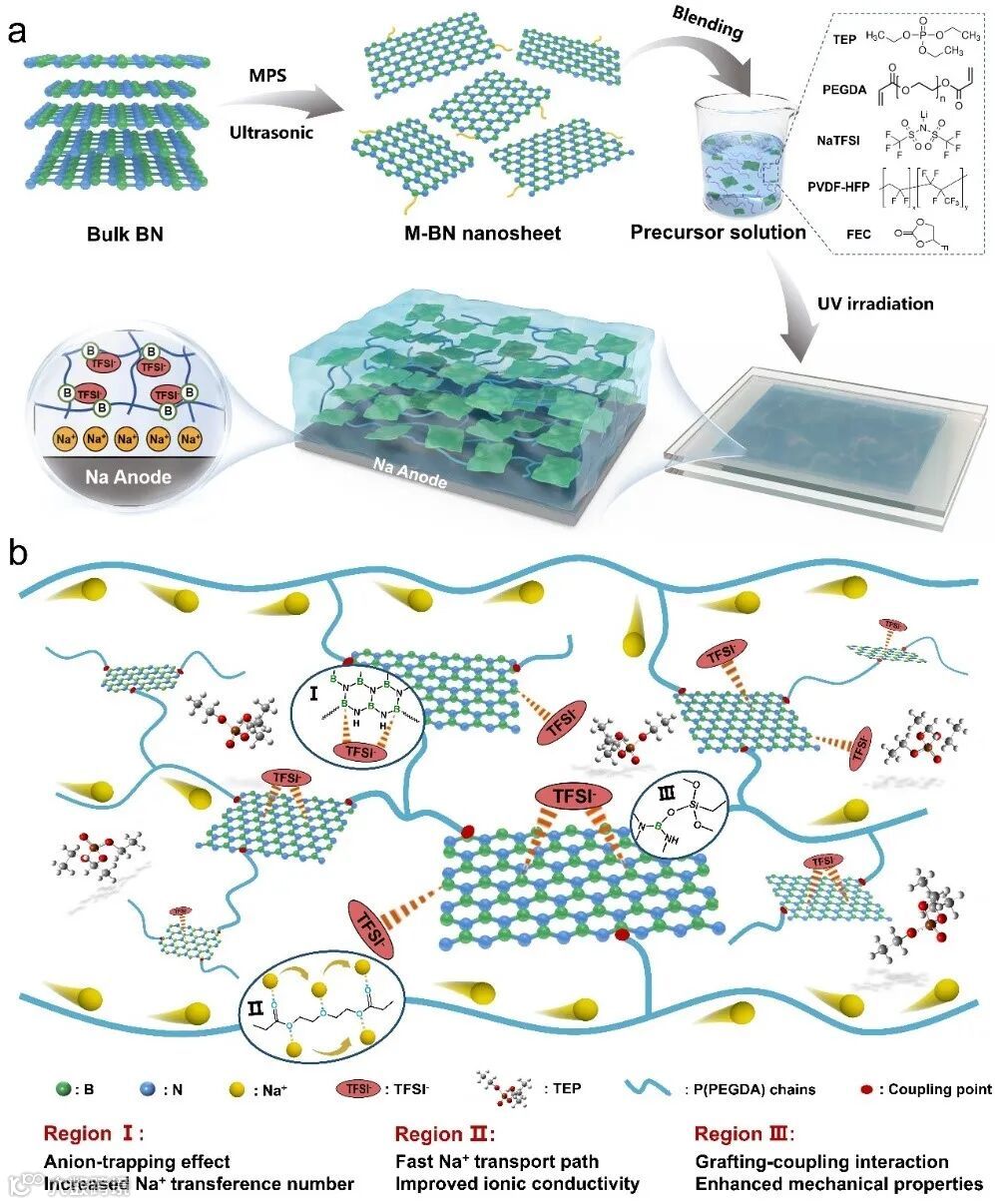氮化硼纳米片化学耦合阻燃凝胶聚合物电解质实现无枝晶钠金属电池