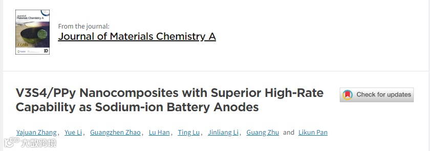 近日,宿州学院朱光教授、华东师范大学大学潘丽坤教授和暨南大学黎晋良副研究员合作,在国际知名期刊Journal of Materials Chemistry A上发表题为“V3S4/PPy nanocomposites with superior high-rate capability as sodium-ion battery anodes”的文章。该文章成功地合成V3S4/PPy复合材料,其中高导电性的PPy不仅作为支撑V3S4的基底,还有效地分散在纳米花状的V3S4周围,提高了离子传输速率,从而改善了其储钠性能。