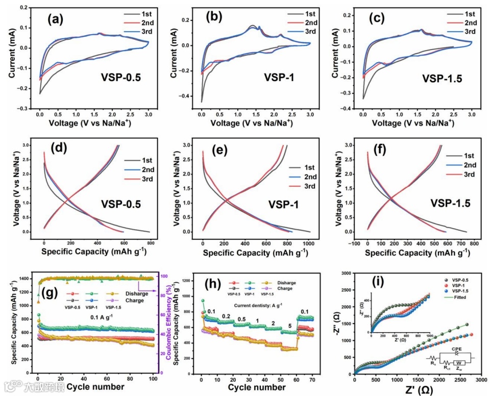 合成的V3S4/PPy显示出卓越的钠储存性能(在0.1 A g-1条件下经过100个循环后达到619mAh g-1,在2 A g-1条件下为585 mAh g-1),优于大多数硫化钒基电极,并显示出在高性能钠离子电池方面的潜力。值得注意的是,本研究将为优化具有插入和转化双重机制的复合材料电极的电化学性能提供新的见解。
