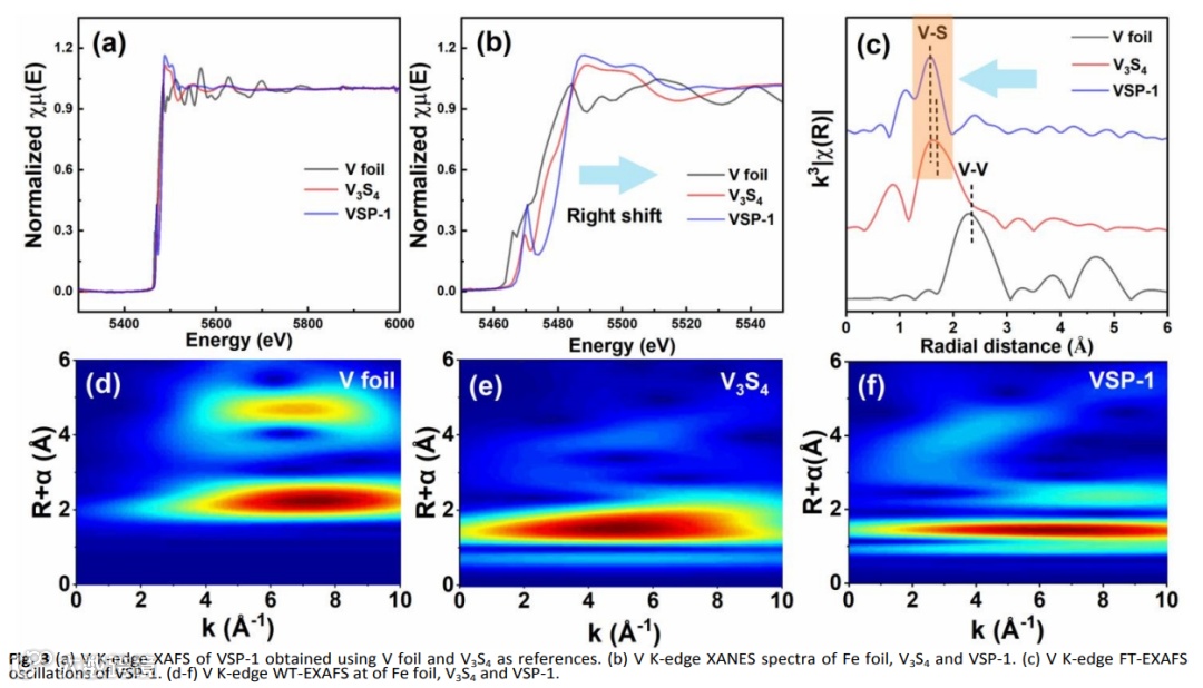 通过X射线衍射(XRD)、扫描和透射电子显微镜(SEM和TEM)和X射线光电子能谱(XPS)鉴定了V3S4中成功地引入了PPy。通过x射线吸收精细结构光谱,为V3S4/PPy的导电性增强提供了新的见解。