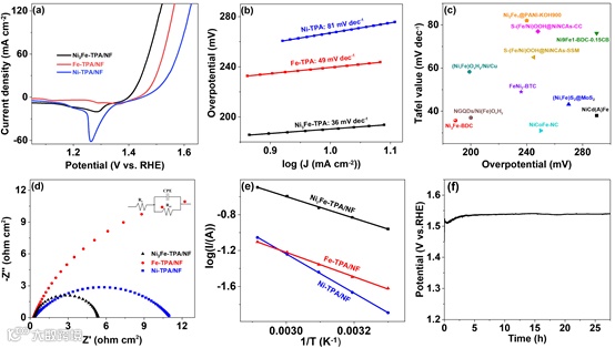 图2. NixFe-TPA/NF在1.0 M KOH中的催化性能研究。