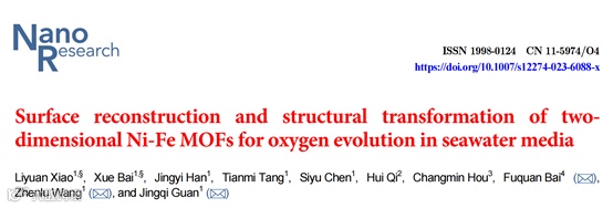二维Ni-Fe MOFs表面重构和结构转变促进其在海水中析氧性能