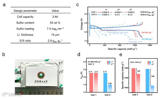 该工作阐明了正极界面电荷转移动力学缓慢是导致高能量密度锂硫软包电池在大倍率下性能衰退的主要因素,为锂硫电池的合理策略设计提供了新的启示。