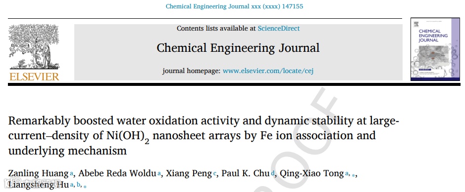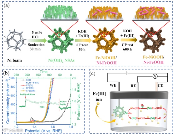 Fe离子助催化同步实现提高Ni(OH)2纳米片水氧化活性和大电流动态稳定性