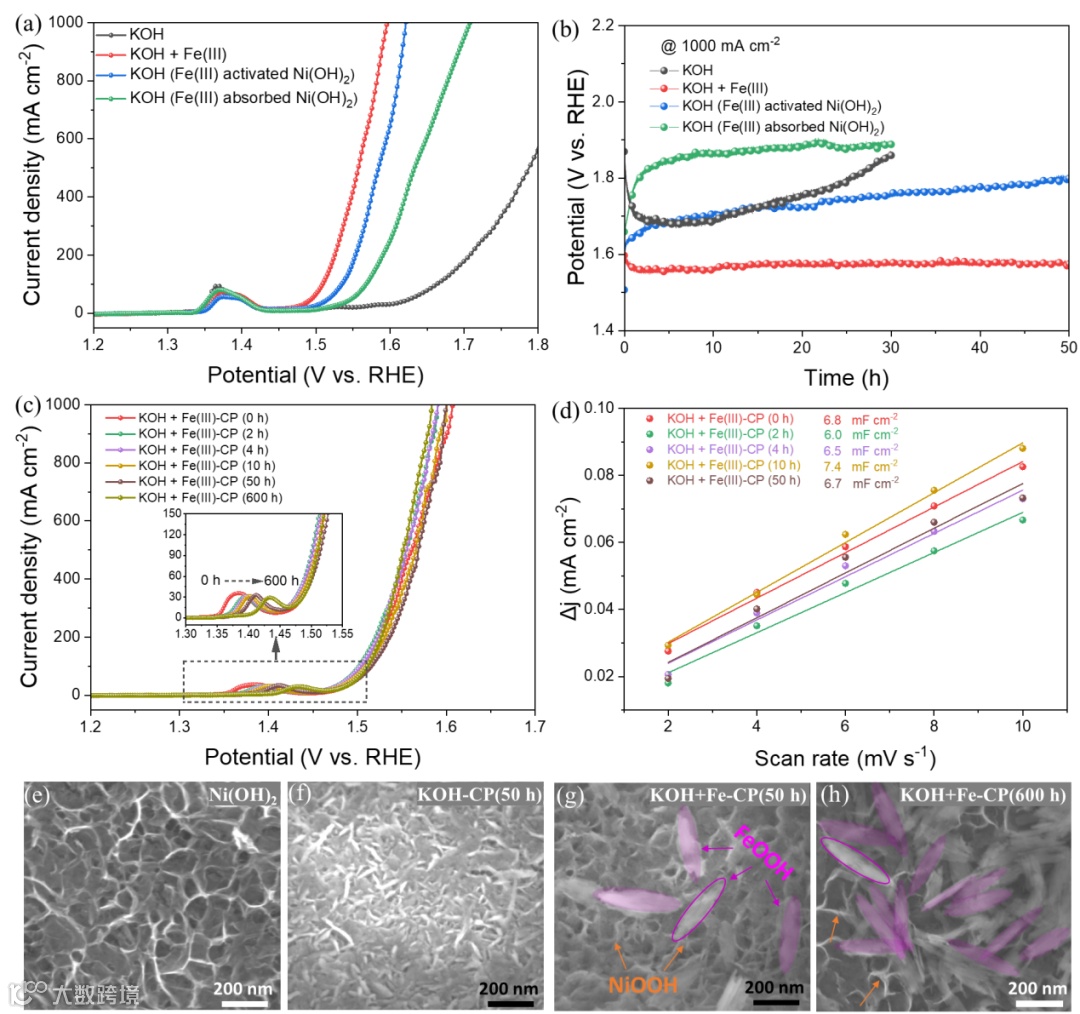 要点四:Fe(III)作为动态的催化活性位点,有利于在工业级电流密度下维持Ni(OH)2电极的稳定性
