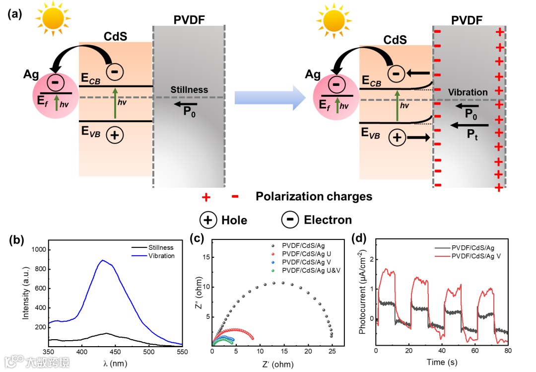 图6. PVDF/CdS/Ag 压电增强光催化性能的机理,