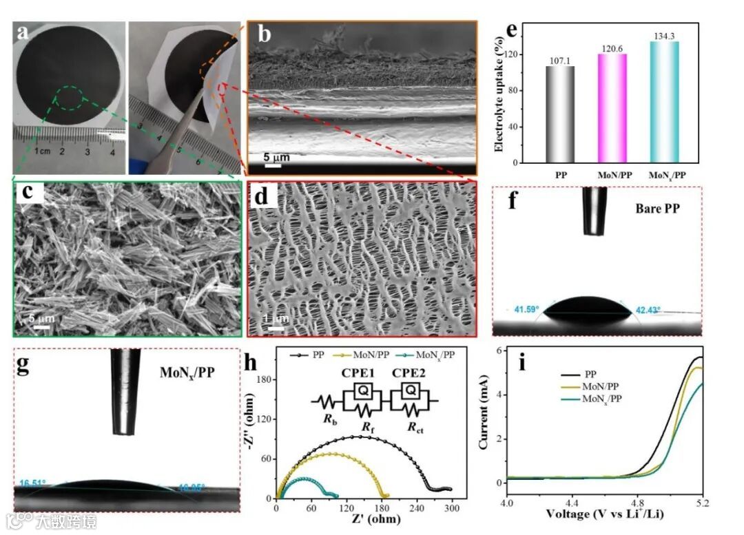 要点二:MoNx异质结纳米带改性隔膜(MoNx/PP)的构建及性能表征