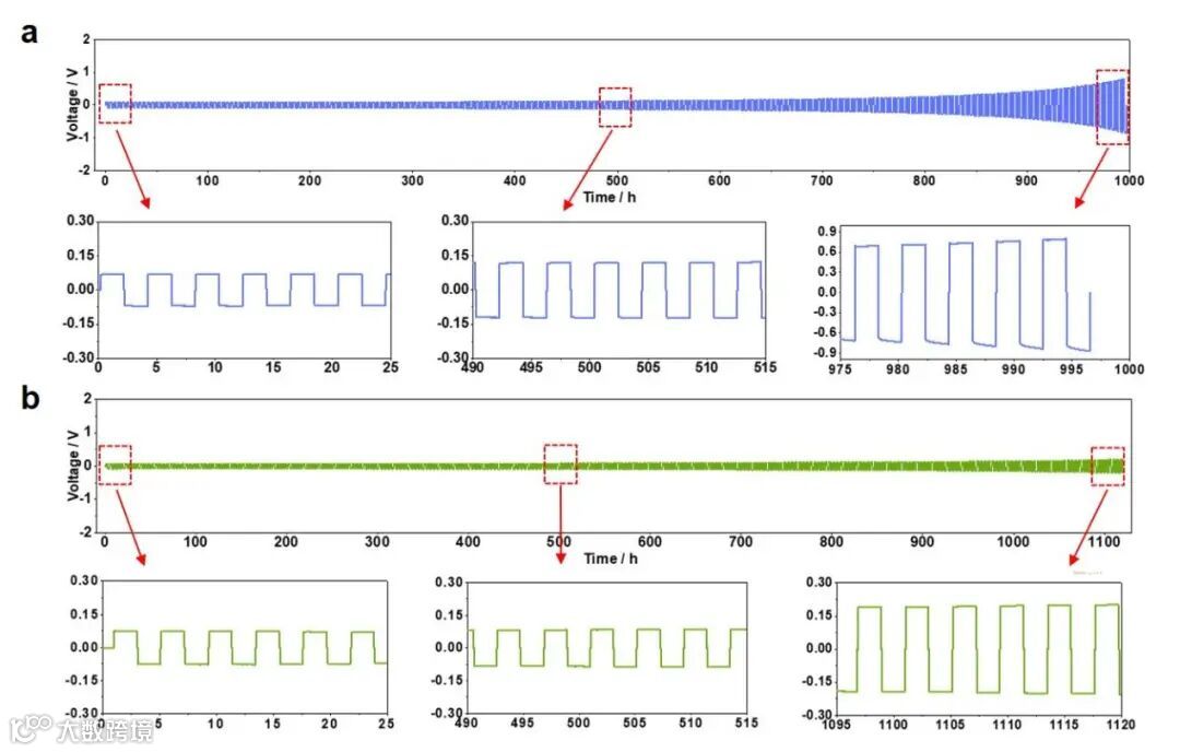 基于此,中科院物理所吴凡团队在解决硫化物固态电解质与有机液体电极之间长期存在的固-液界面相容性难题上取得了突破。开发出了包括PEO和β-Li3PS4/S在内的多种兼容性强的界面保护层,实现了大于1000h的长时间稳定循环。这种稳定硫化物固态电解质和有机液态锂负极之间的固-液界面的技术方法,成功地解决了界面副反应的关键问题,使这种电池构造在长周期运行中安全稳定。这为进一步提高锂电池的循环寿命和安全性开辟了新的路径。该成果以“Stable Interface Between Sulfide Solid Electrolyte and-Room-Temperature Liquid Lithium Anode”为题发表在ACS Nano 上,