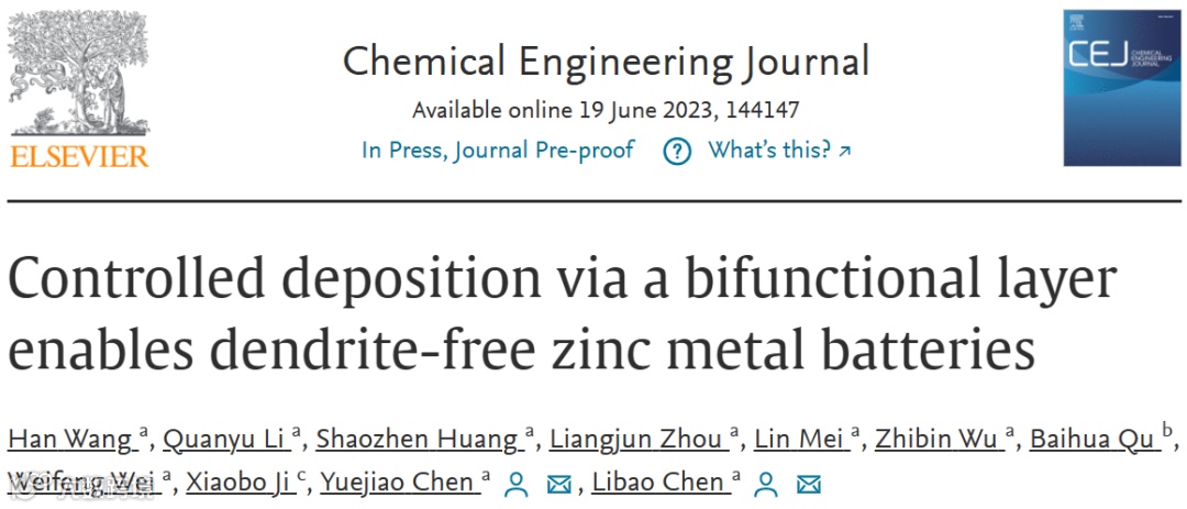 基于以金属锌为负极的锌离子电池(ZIBs)具有理论容量高(820 mAh g-1或5854 mAh cm-3)、氧化还原电位低(- 0.76V vs SHE)和环境兼容性好等优点,有望成为下一代储能器件的研究热点。但锌负极上的枝晶生长和副反应等棘手的问题阻碍了锌离子电池的商业应用。并且由于金属锌对水系电解质的热力学活性较高,锌负极还面临着析氢反应(HER)和腐蚀等一系列问题,这又会引发一系列严重的锌损耗,称为“死锌”。因此,设计一种全方位的既抑制枝晶又减缓副反应发生的多功能锌负极是迫在眉睫的。