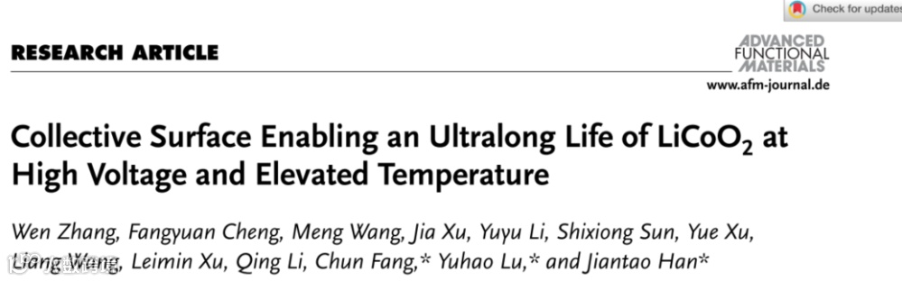 表面重构策略提升钴酸锂在高电压和高温下的循环稳定性